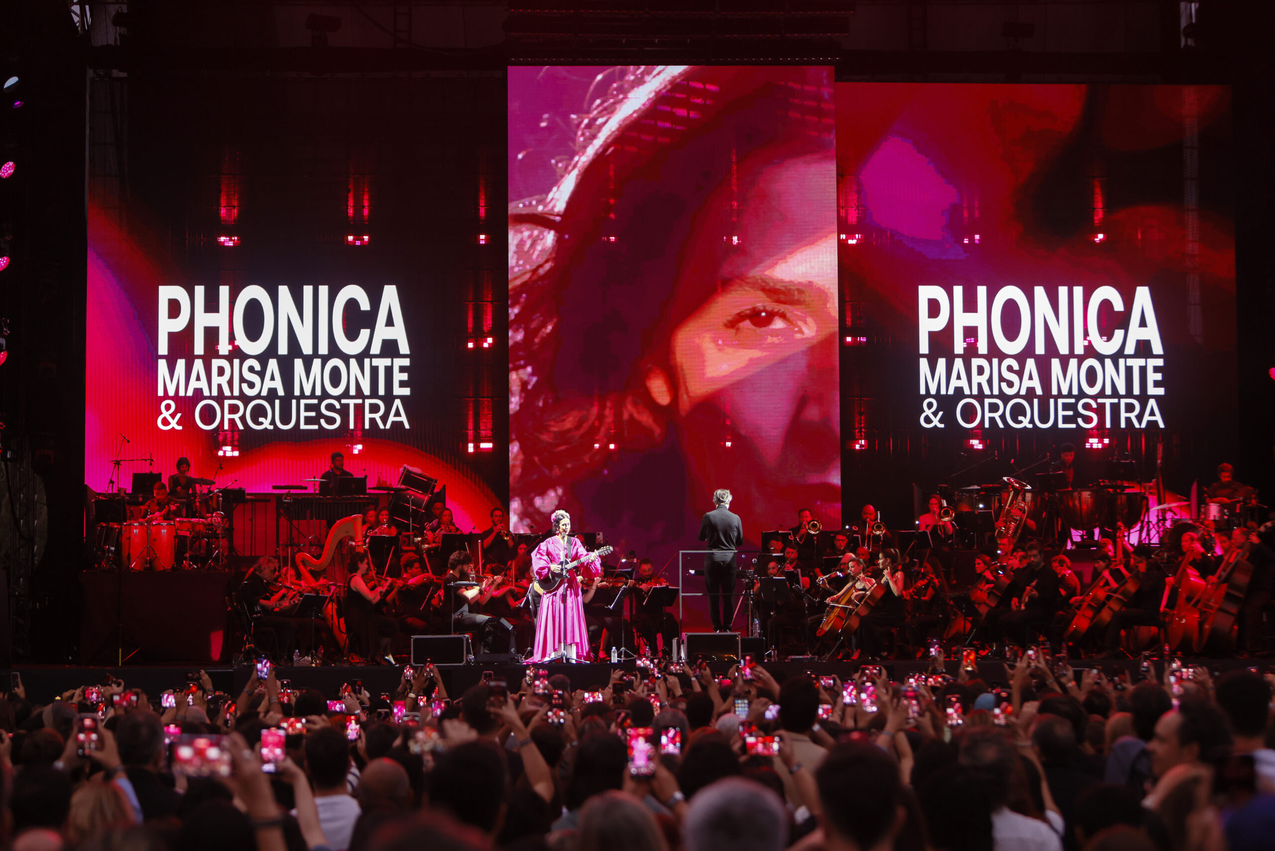 Marisa Monte protagonizou no último fim de semana a estreia de uma das turnês mais aguardadas do ano. Acompanhada pela sua banda e por uma orquestra sinfônica formada por 55 músicos selecionados especialmente para a tour, a cantora e compositora embalou mais de 25 mil pessoas em duas sessões do espetáculo Phonica no Parque Ecológico da Pampulha, em Belo Horizonte. As apresentações, com regência do maestro André Bachur, uniram o popular e o erudito em interpretações de clássicos que marcaram a carreira da artista e a história da música popular brasileira.