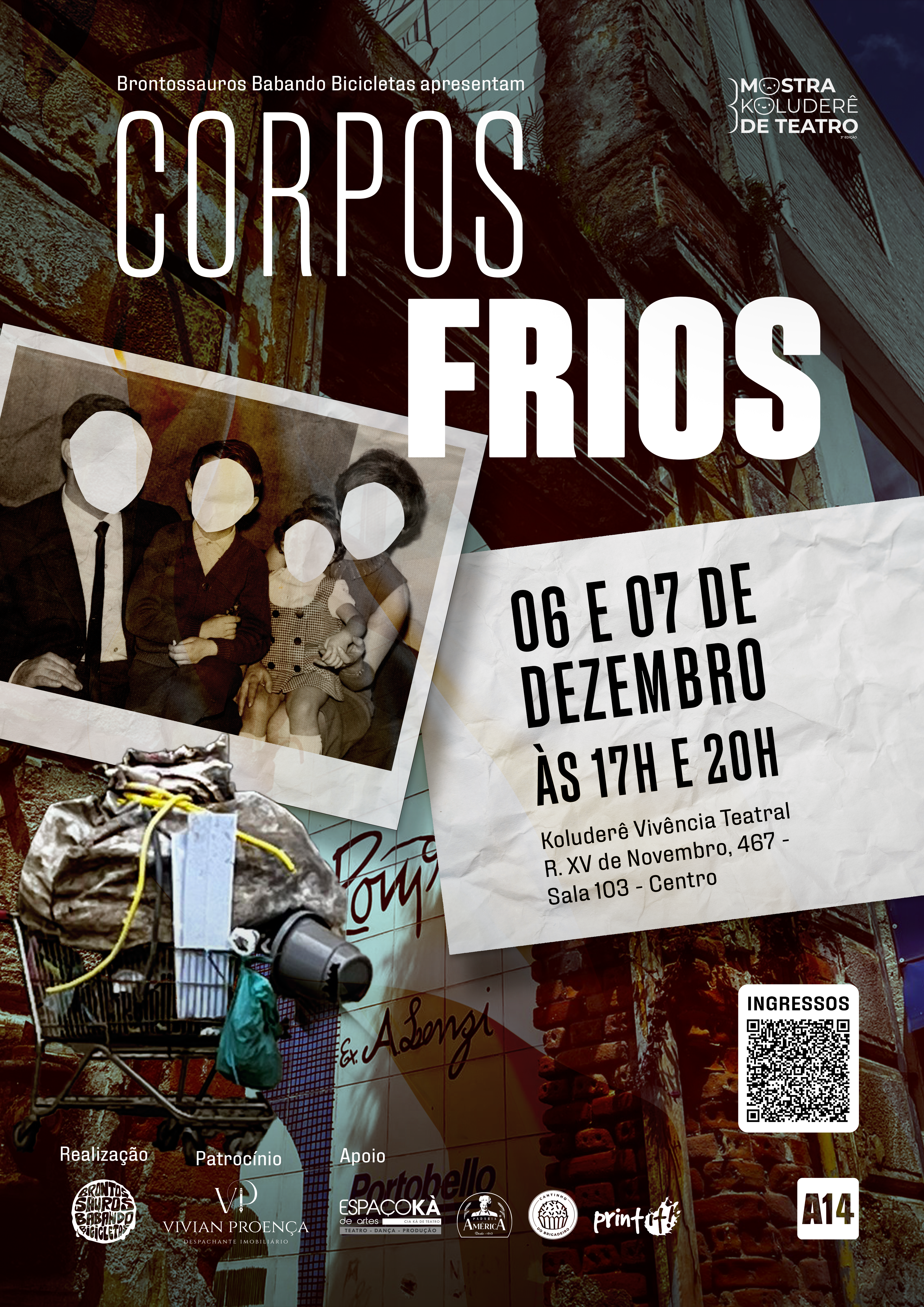 “Corpos Frios” é um espetáculo de dança-teatro que investiga as camadas visíveis e invisíveis da exclusão social, composto a partir do método de Pina Bausch, no qual o elenco desenvolve conteúdos cênicos por meio de questões.