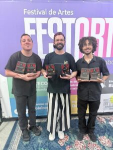 A cerimônia de entrega dos troféus ocorreu no CEU das Artes, reunindo autoridades, artistas e comunidade. Os prêmios foram entregues pelo prefeito de Colombo, num gesto simbólico que reforçou o compromisso institucional com o setor cultural. Representando a Cia KÁ, Kelvin Millarch subiu ao palco acompanhado pelos atores Gabbiel e Carmelo, celebrando o trabalho coletivo que consolidou a companhia como uma das mais premiadas da edição.