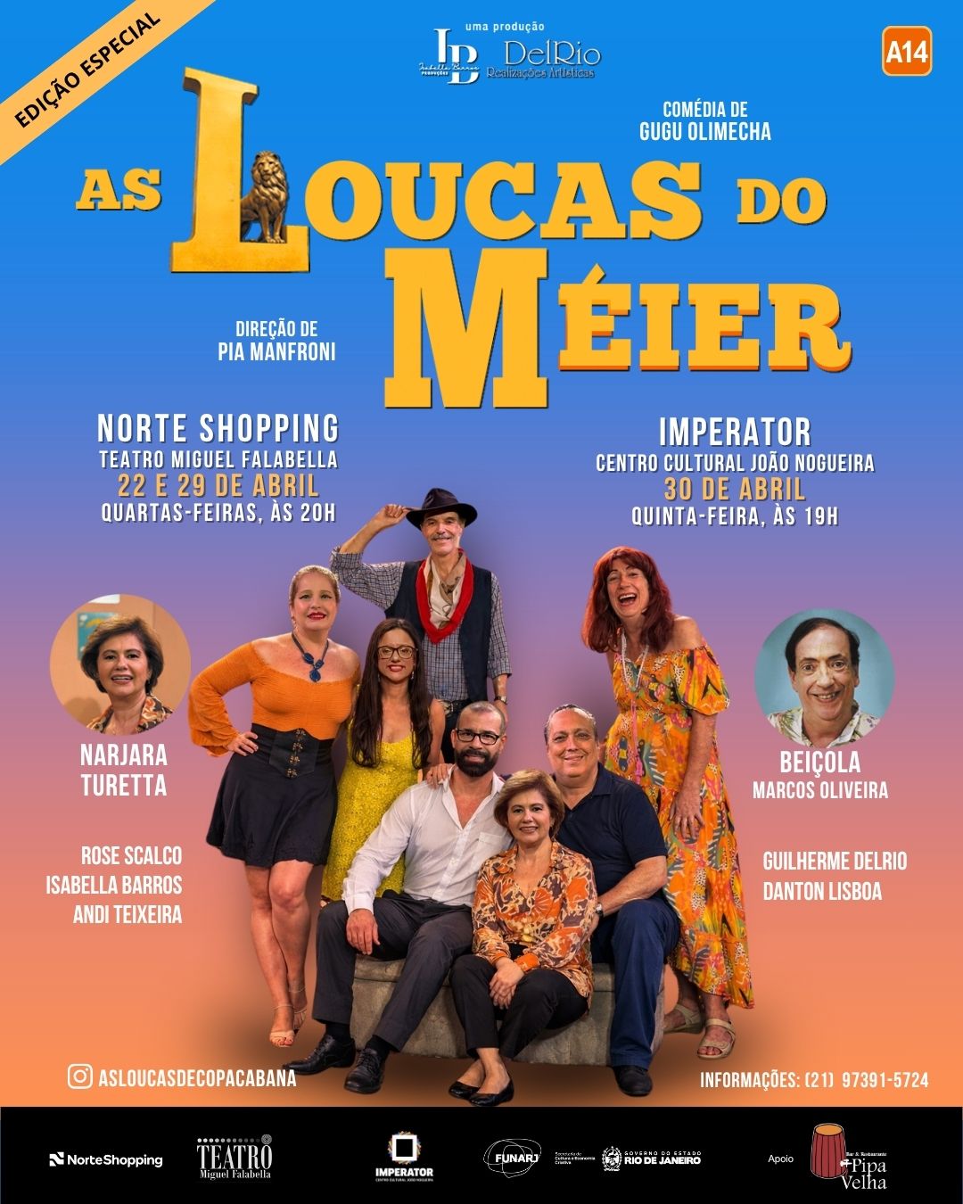 O triângulo amoroso mais explosivo do Rio chegou ao Méier! A comédia divertidíssima de autoria do mestre do humor Gugu Olimecha, que já conquistou o público pelo Rio como “As Loucas de Copacabana”, chega em edição especial ambientada no Méier no Teatro Miguel Falabella, no Norte Shopping, dias 22 e 29 de abril às 20h, e no Imperator – Centro Cultural João Nogueira dia 30 de abril às 19h. O elenco traz nomes de veteranos conhecidos como Narjara Turetta, Marcos Oliveira (o eterno Beiçola) e grande elenco nesse espetáculo que circula desde 2024 lotando os teatros por onde passa.