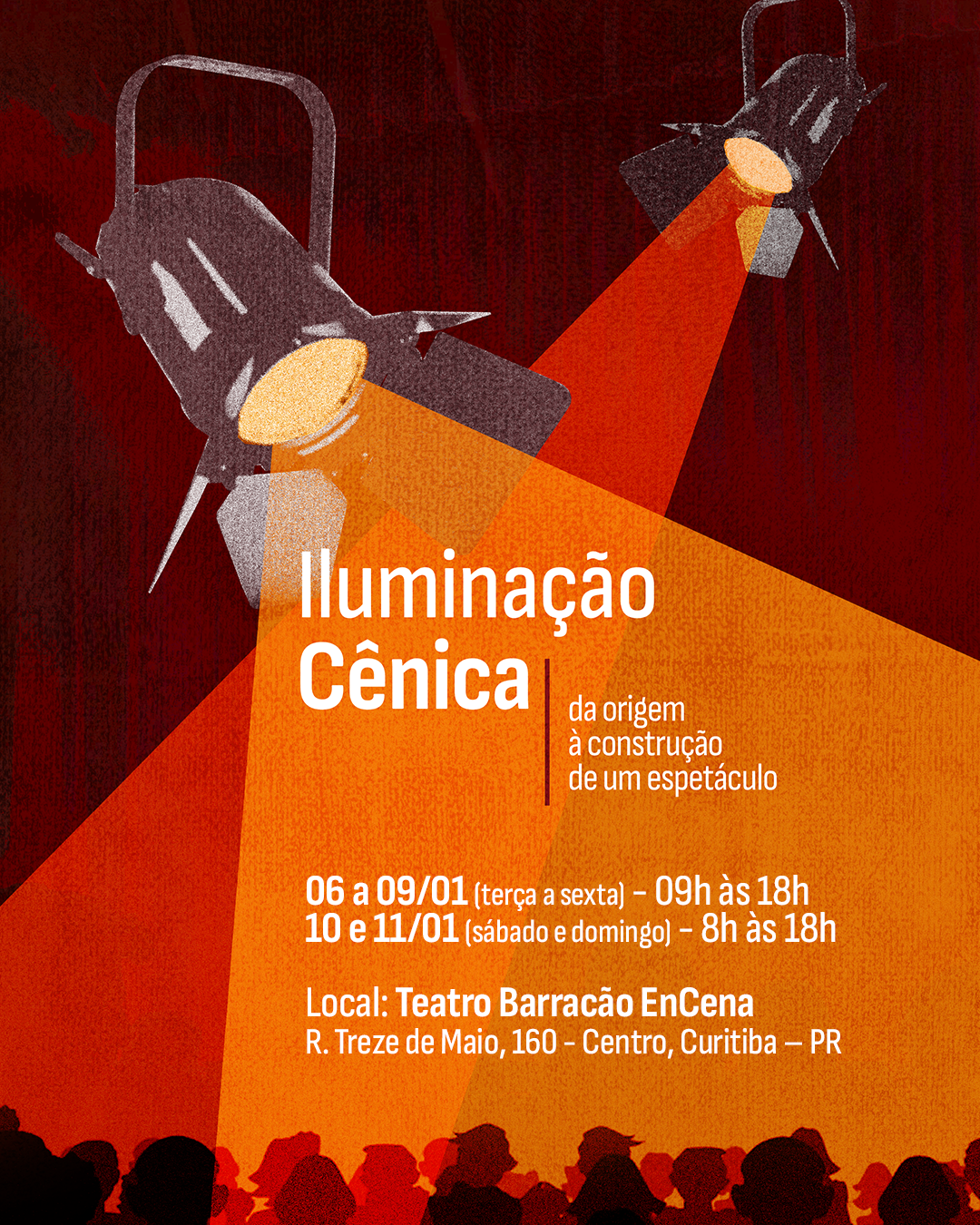 Estão abertas as inscrições para a oficina “Iluminação Cênica – Da origem à construção de um espetáculo”, que chega agora a Curitiba. As atividades serão realizadas entre os dias 6 e 9 de janeiro, no Teatro Barracão EnCena, com entrada gratuita e vagas limitadas. Inscrições podem ser realizadas através deste LINK.