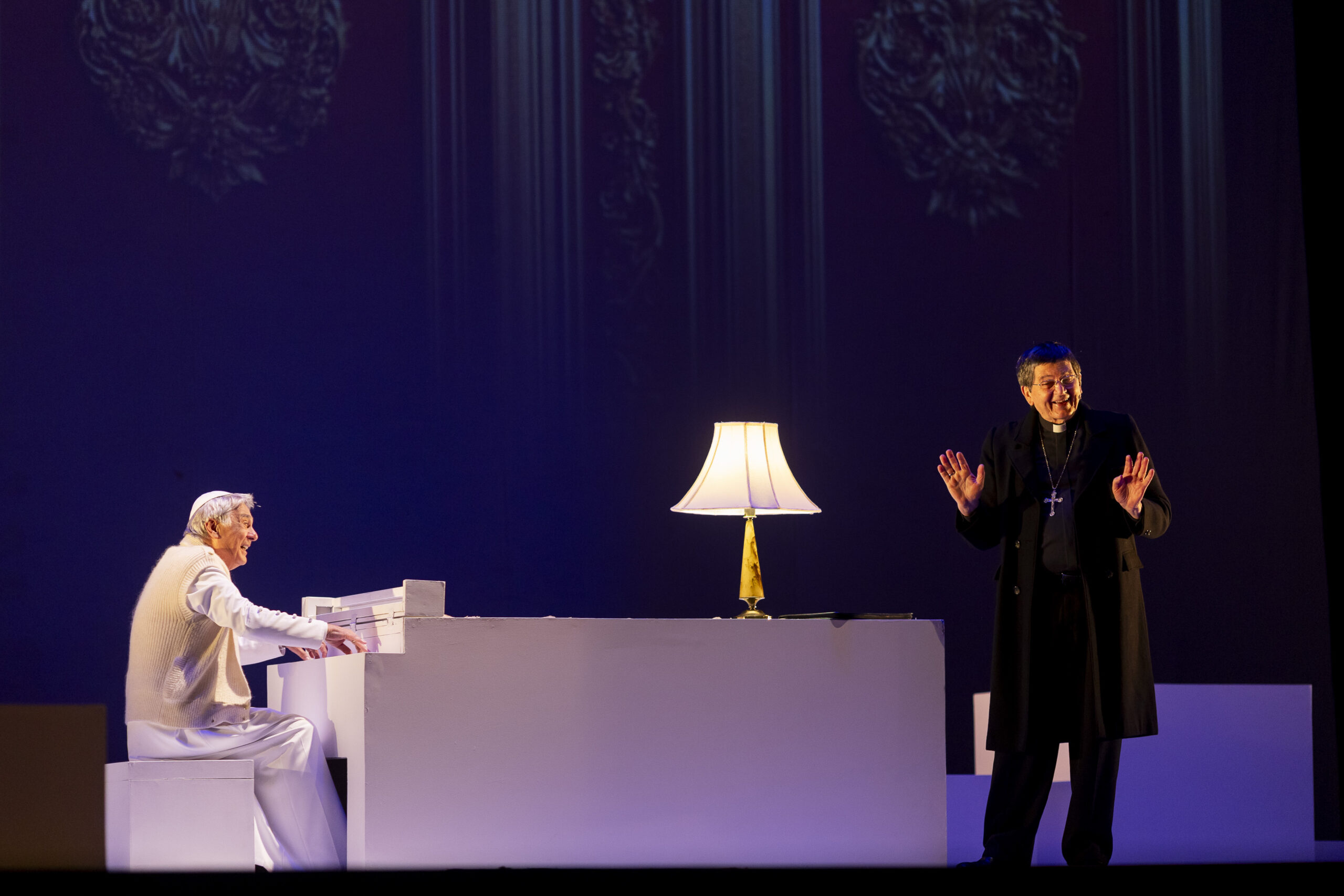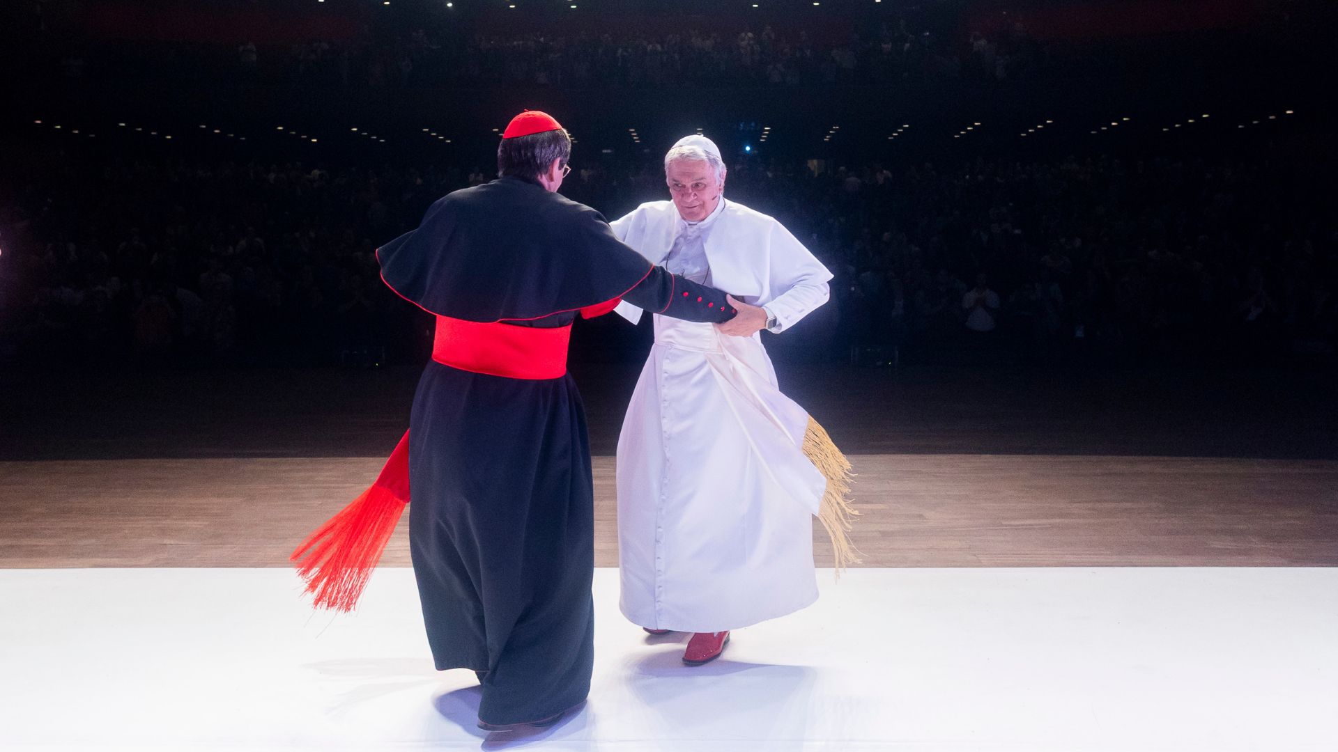 A peça acaba humanizando muito a figura do papa em que em meios as discussões eles têm dúvidas, fazem piadas, erram. A peça não os eleva na figura de todo poderoso como no filme. Em meio às discussões, ambos se escutam mesmo discordando um do outro. Os momentos de humor também contribuíram para a peça não ficar muito cansativa mesmo longa.