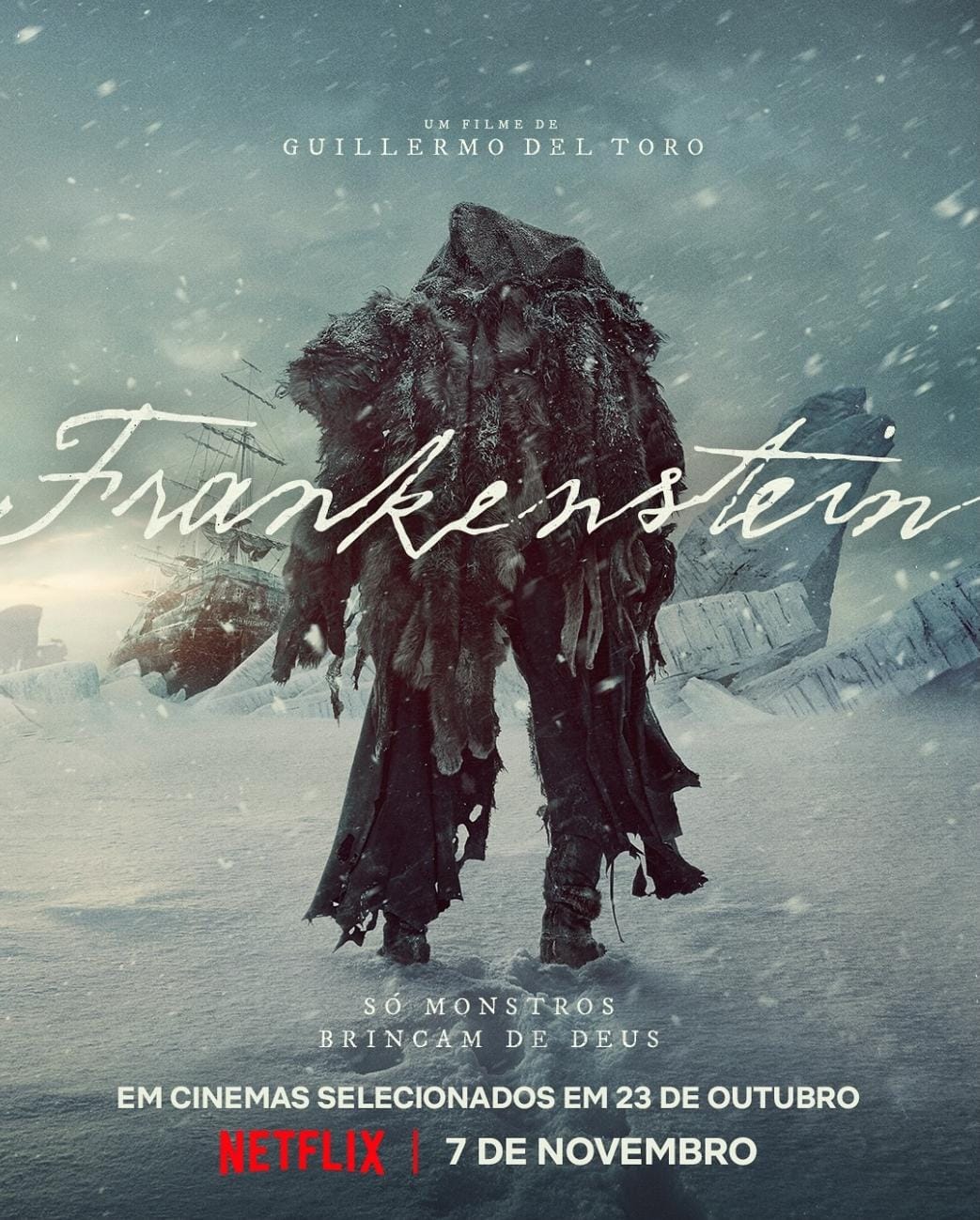 Foram reveladas, nesta semana, novas informações sobre Frankenstein, longa dirigido por Guillermo del Toro (O Labirinto do Fauno e A Forma da Água) e uma das principais apostas da Netflix para 2025. Além dos pôsteres inéditos que apresentam o cientista Victor Frankenstein e sua criatura, também foram confirmadas as datas de estreia do filme no catálogo de streaming e um lançamento limitado nos cinemas.