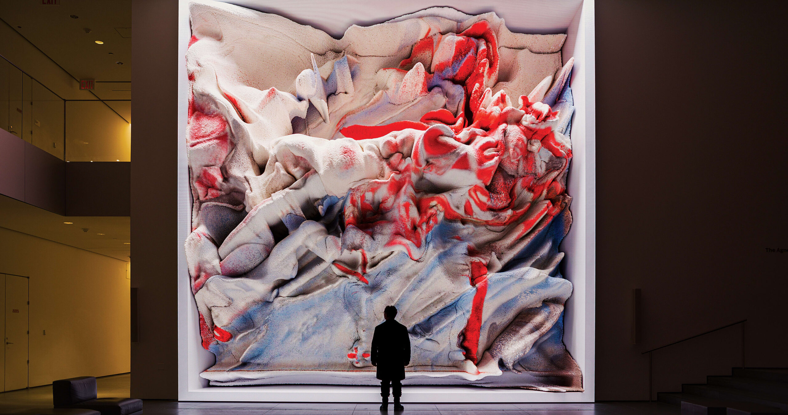 O trabalho de Anadol propõe uma pergunta estética e provocadora: “o que uma máquina sonharia depois de ver a coleção do MoMA?”.