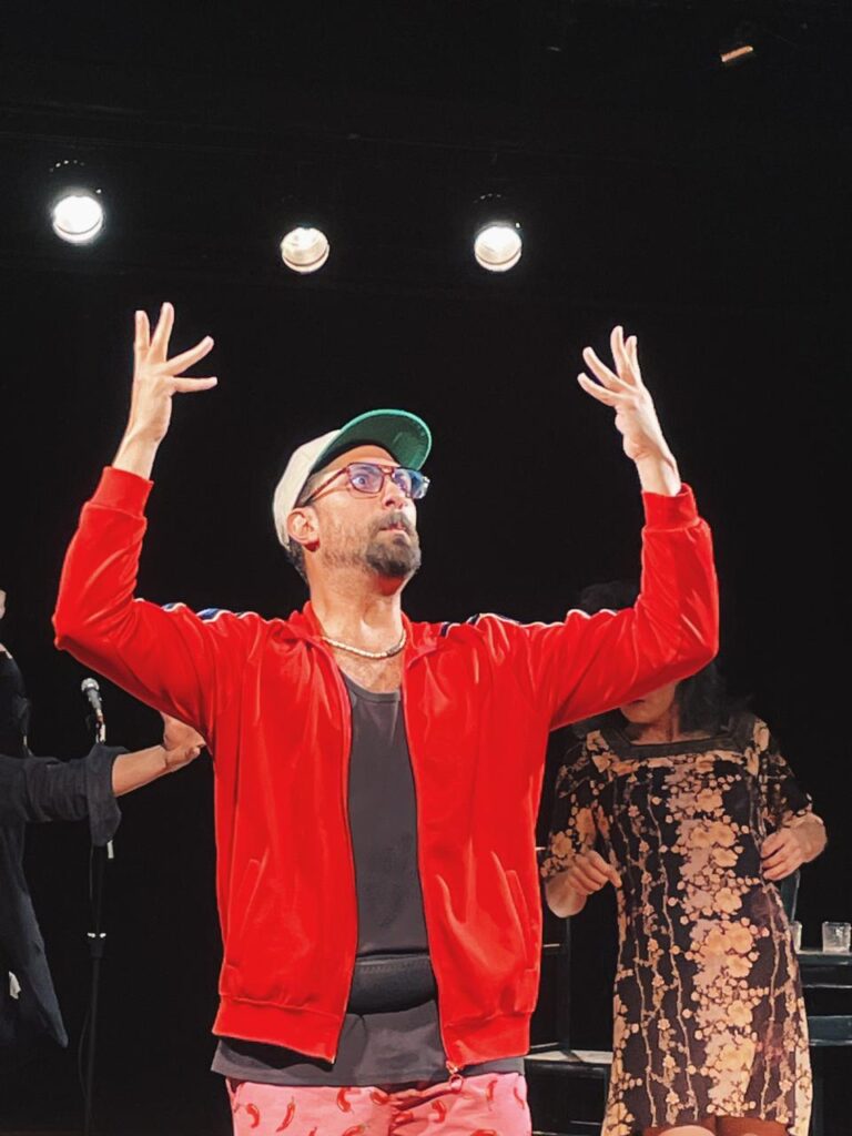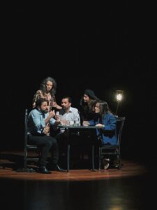 Eu já havia visto a peça em sua estreia, em setembro, no Teatro José Maria Santos, e o elenco — Ane Adade, Kauê Person, Marcelo Rodrigues, Michele Bittencourt e Renata Bruel — já me encantava desde então; além de lembrar de como me impressionei com o impacto visual: figurinos exuberantes, uma encenação cheia de energia e um palco que transbordava vida. Tudo era grande, bonito e chamativo.