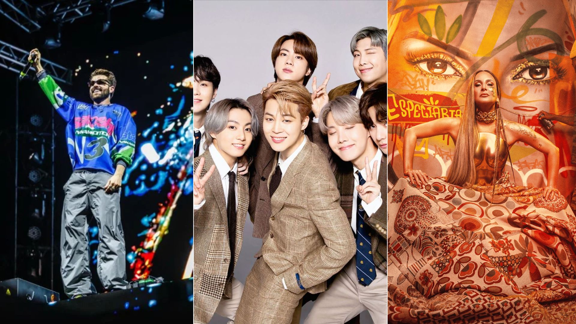 BTS lança o novo álbum da carreira, “ARIRANG”. Os fãs poderão assistir ao show de retorno do grupo na Netflix. A faixa principal de “ARIRANG”, “SWIM”, foi composta por RM. O rapper é creditado como compositor em 13 das 14 faixas (todas, exceto o interlúdio “No. 29”). SUGA participa de 11 faixas, J-Hope contribuiu para 10, Jung Kook compôs em 4, V é creditado em duas e Jimin aparece na faixa de encerramento “Into the Sun”, além de “they don’t know ‘bout us”. Jin não está creditado nas faixas como compositor.