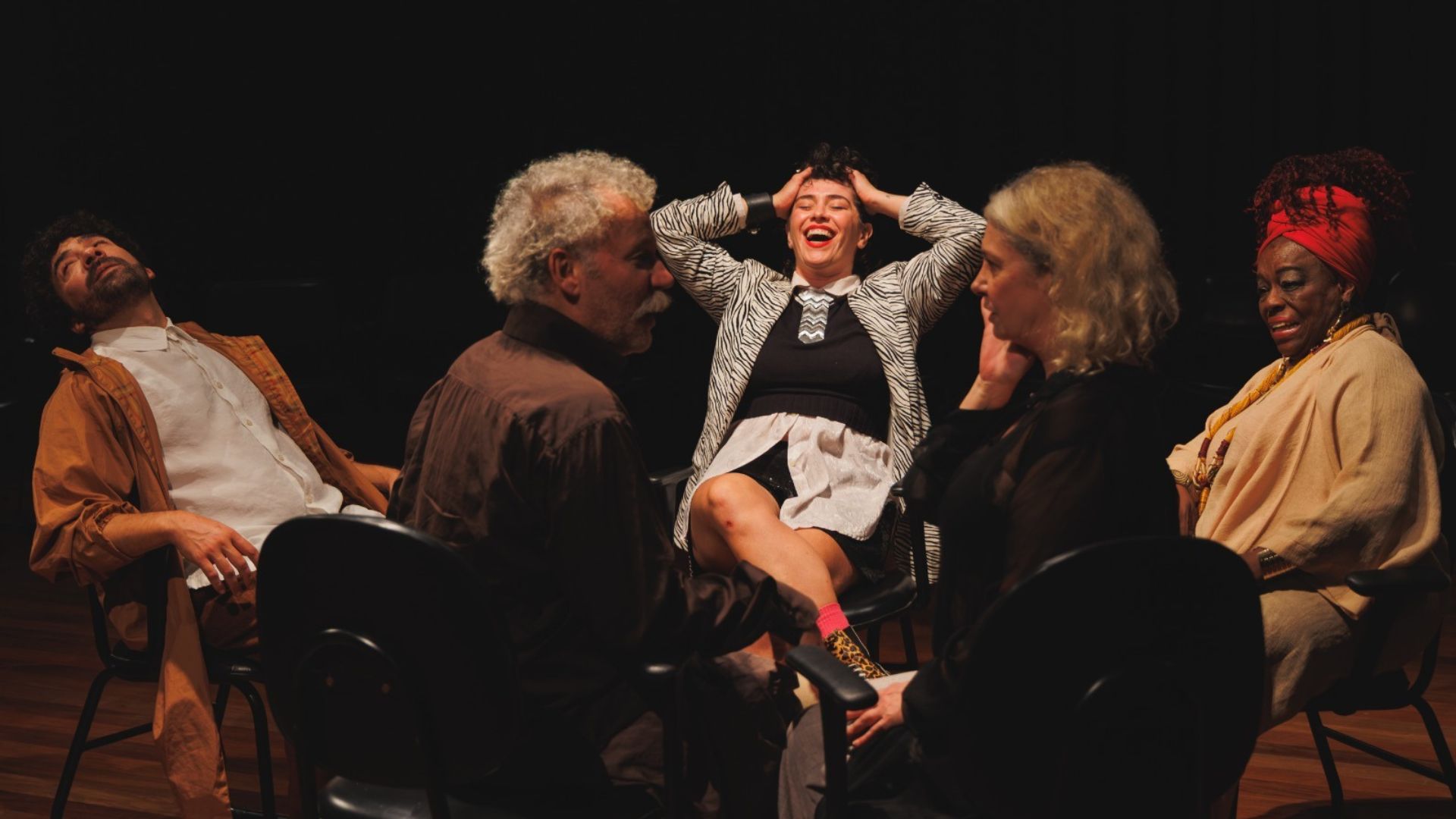 A peça se faz por meio de perguntas que instauram modos de relação e sustentam um estado contínuo de curiosidade. Essas perguntas atravessam diferentes camadas do fazer teatral: o que significa criar uma peça, habitar a cena e compartilhar a presença com quem assiste. Ao deslocar certezas e abrir caminhos de escuta, o trabalho investiga o teatro como um acontecimento coletivo que não se encerra no palco, mas continua no público, na memória e na experiência do tempo vivida durante a apresentação.