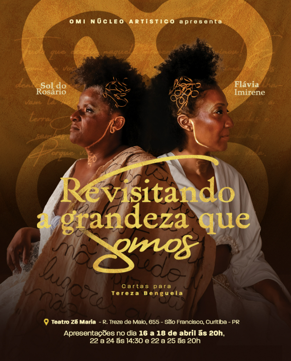 Curitiba recebe, em abril, a estreia do espetáculo “Revisitando a Grandeza que Somos – Cartas para Tereza de Benguela”, uma criação que entrelaça memória, ancestralidade e cena contemporânea para reverberar a força e a continuidade das histórias de mulheres negras no Brasil. Com apresentações gratuitas no Teatro José Maria Santos, o projeto propõe uma experiência que vai além da cena, articulando também ações formativas e de acessibilidade.